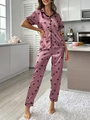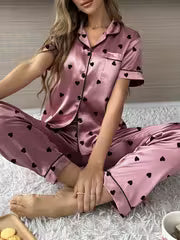 La finitura satinata dona al pigiama un aspetto elegante e raffinato, perfetto per chi cerca qualità e stile senza compromessi.