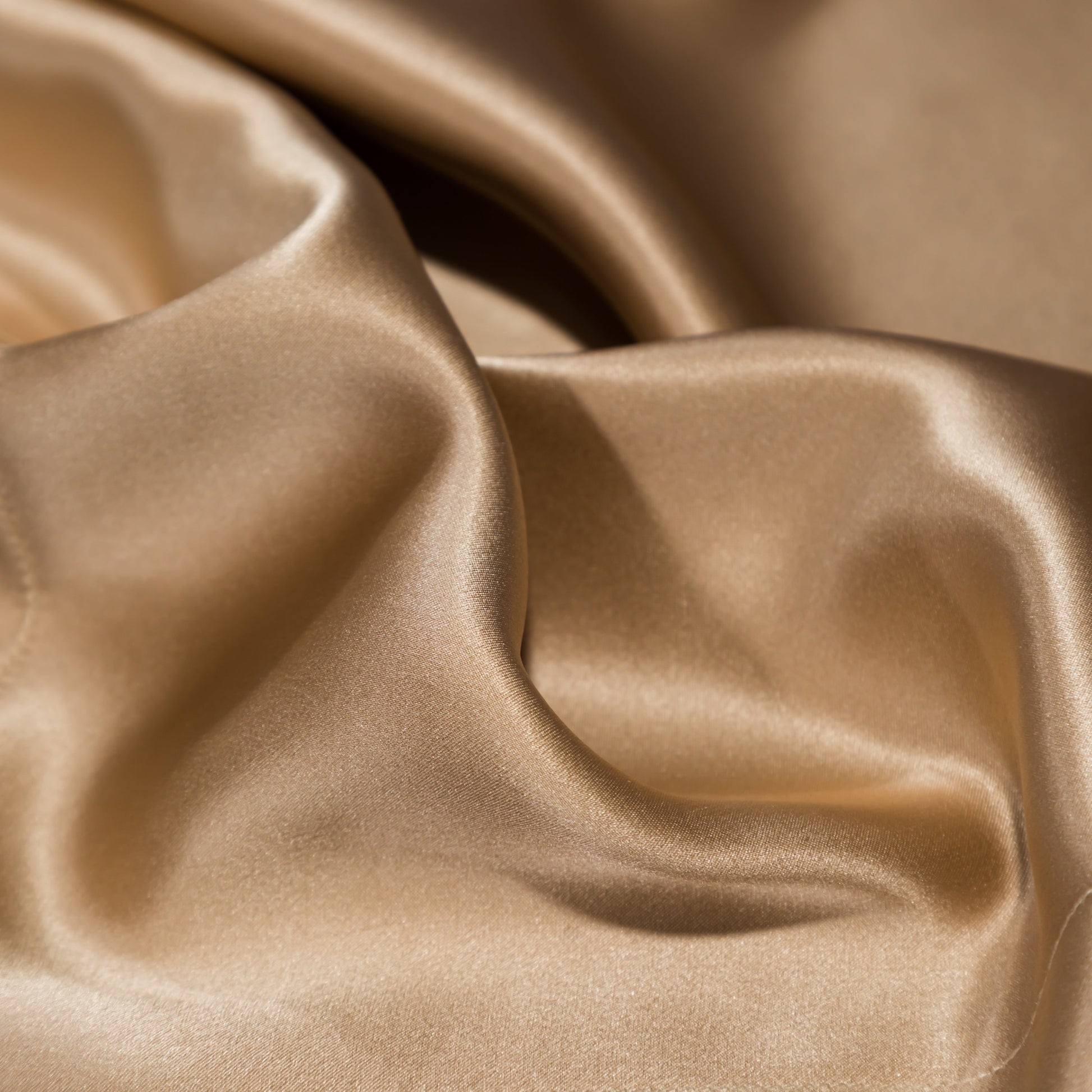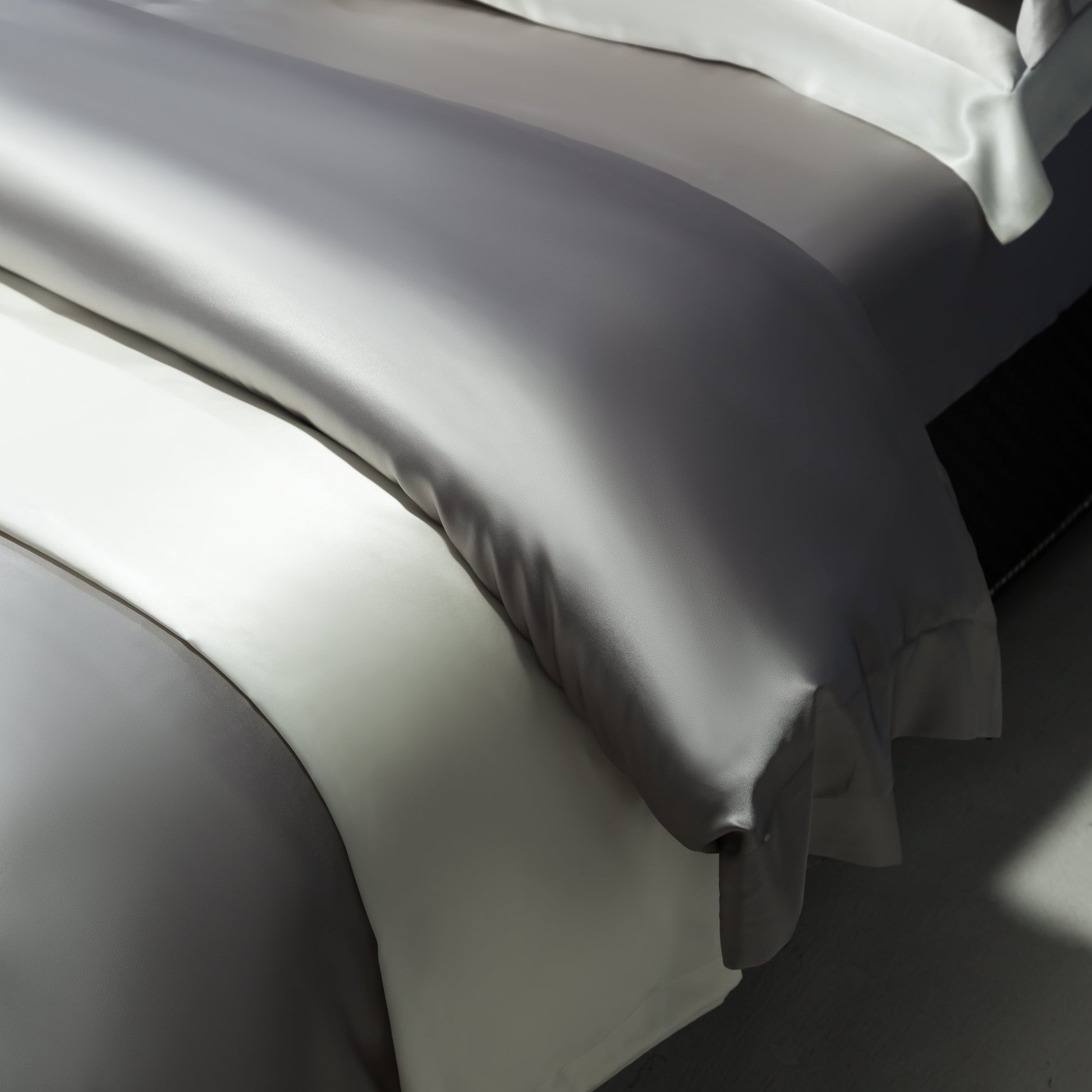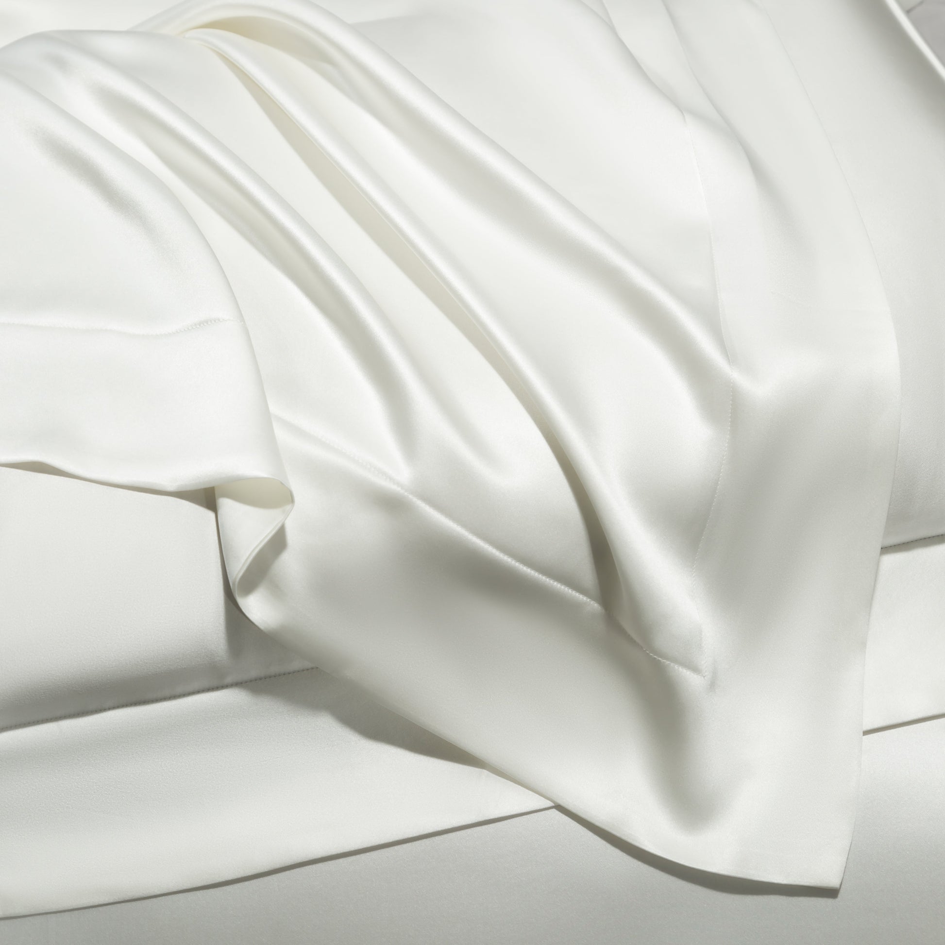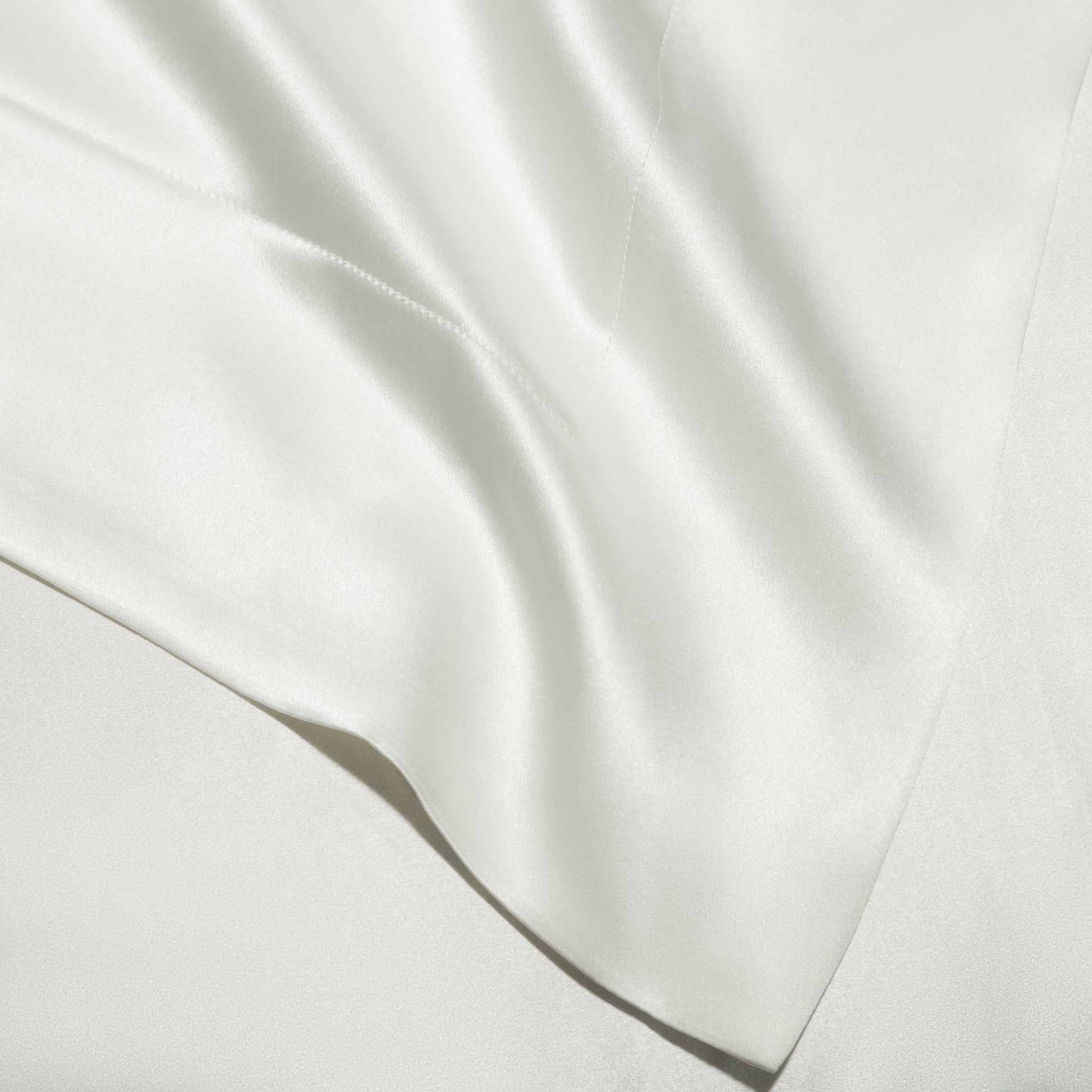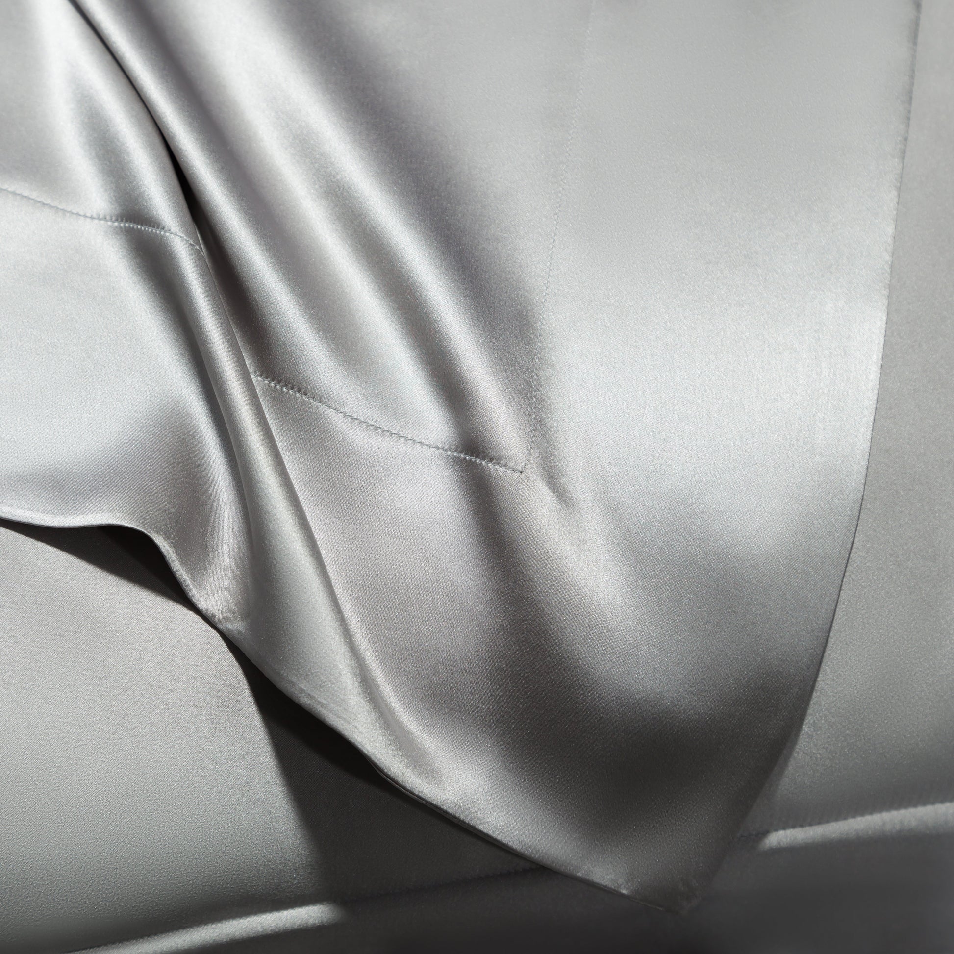 Il nostro raso di pura seta naturale 22 Momme, dalla trama satinata e luminosa, avvolge la pelle con una carezza incomparabile, fresca d’estate e avvolgente d’inverno.