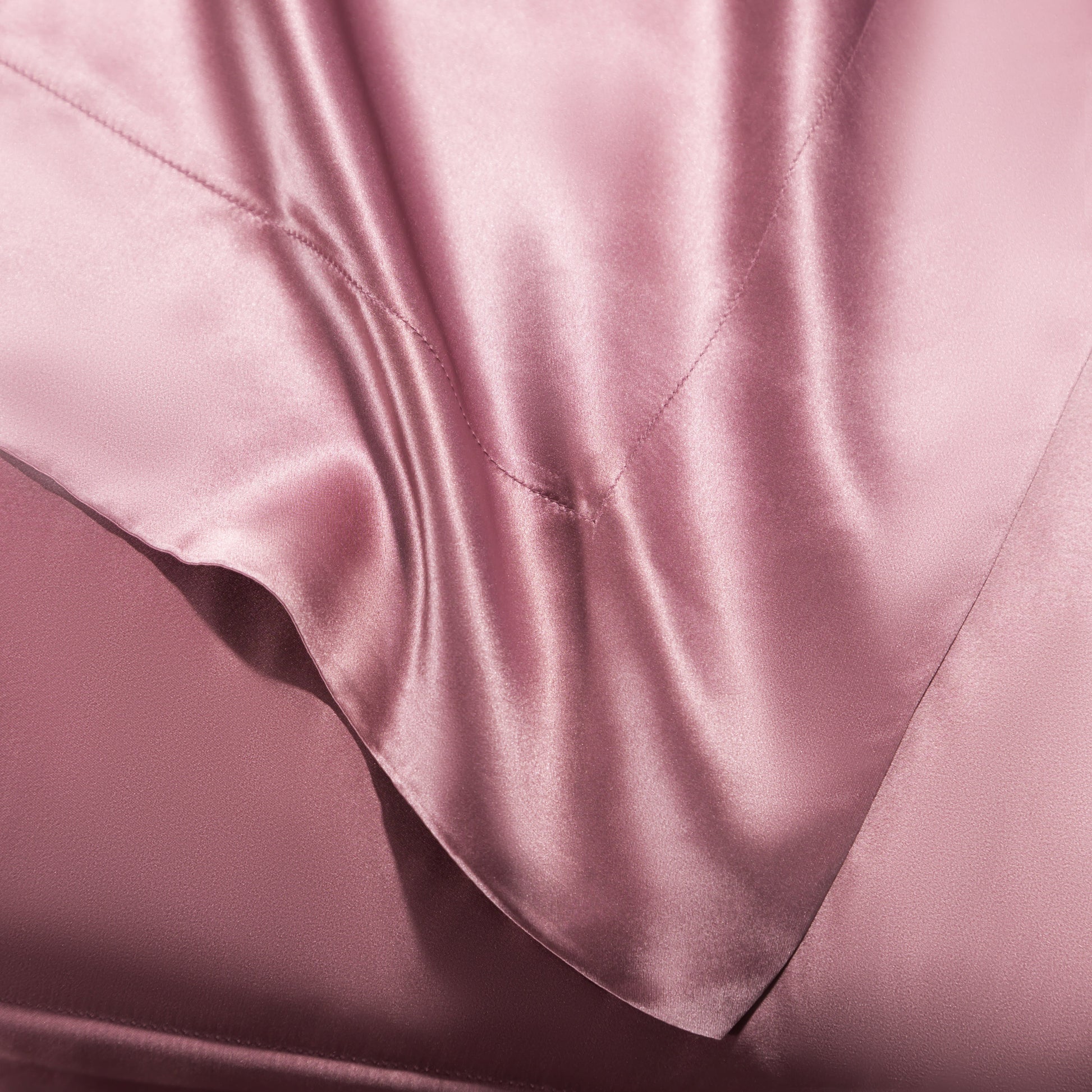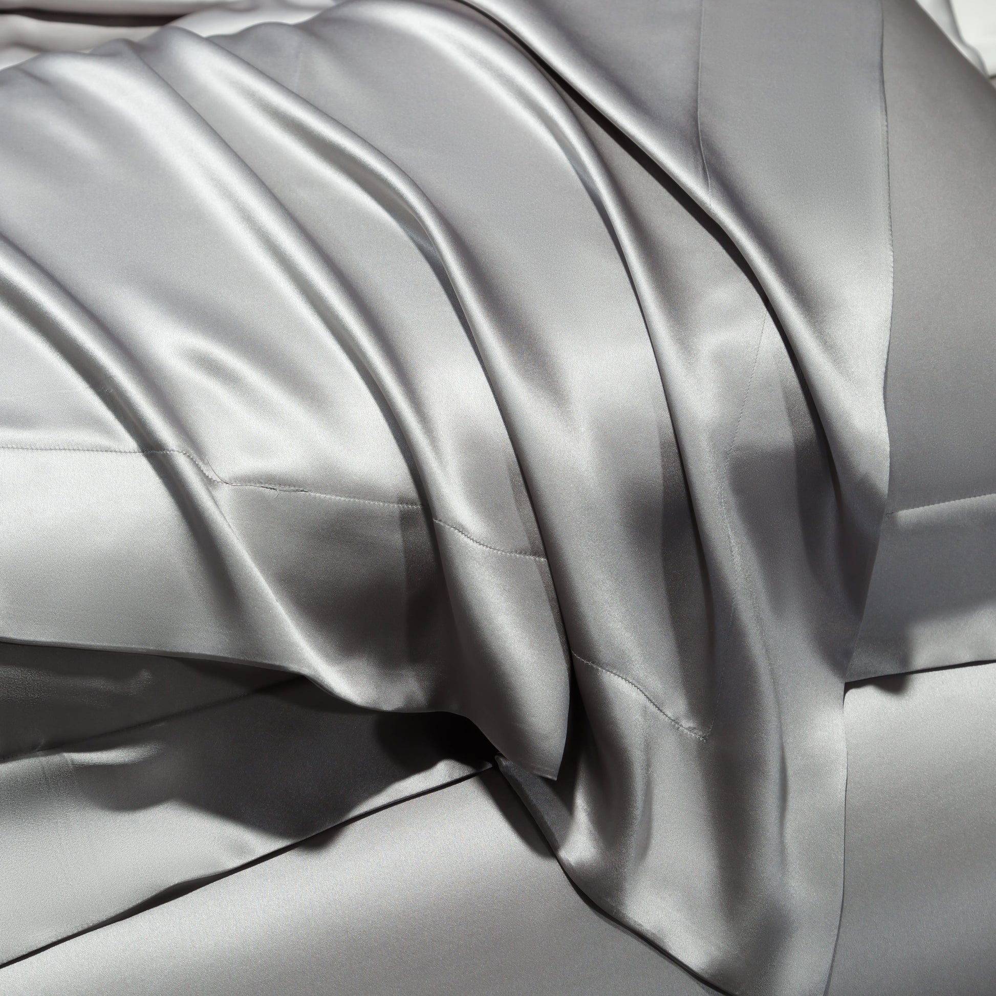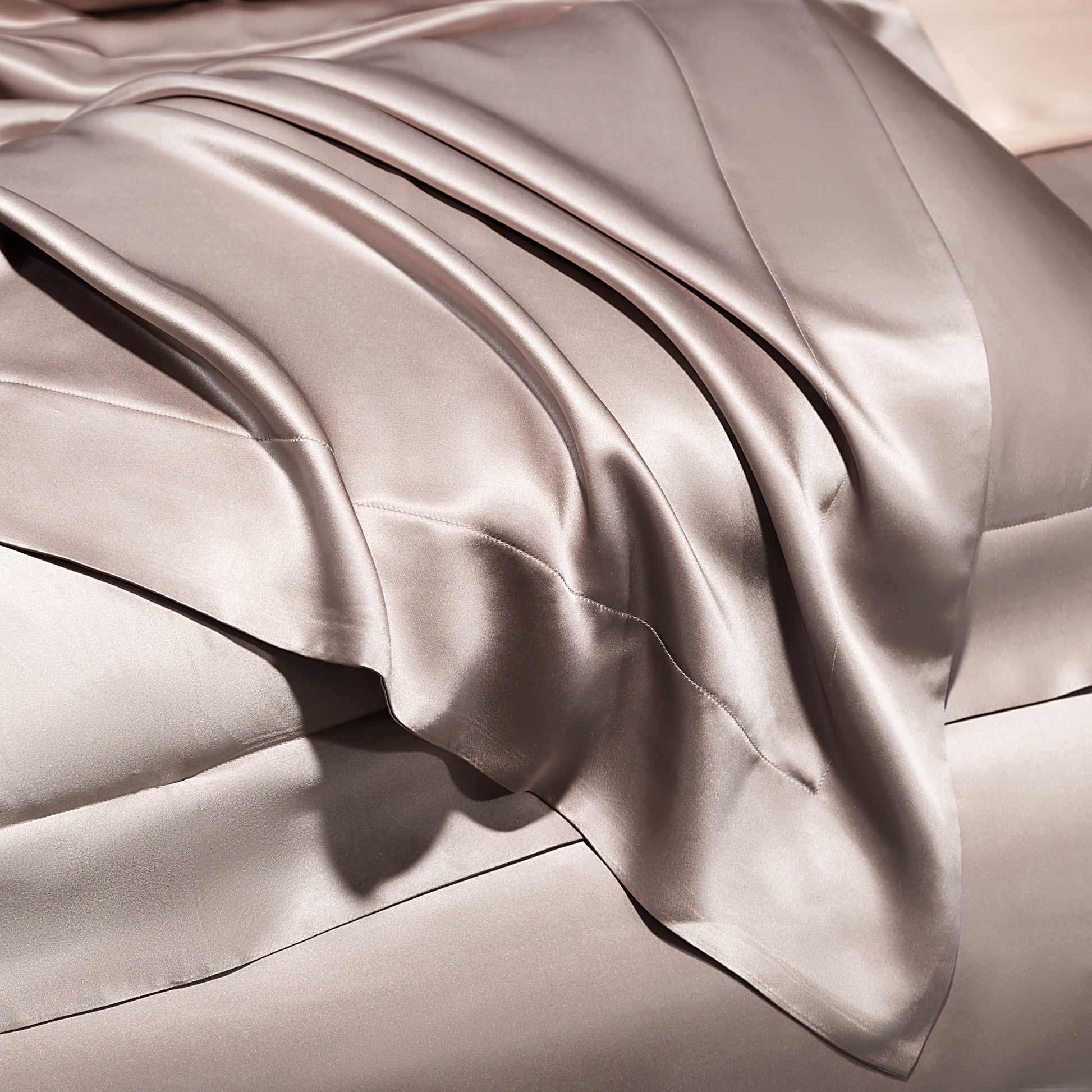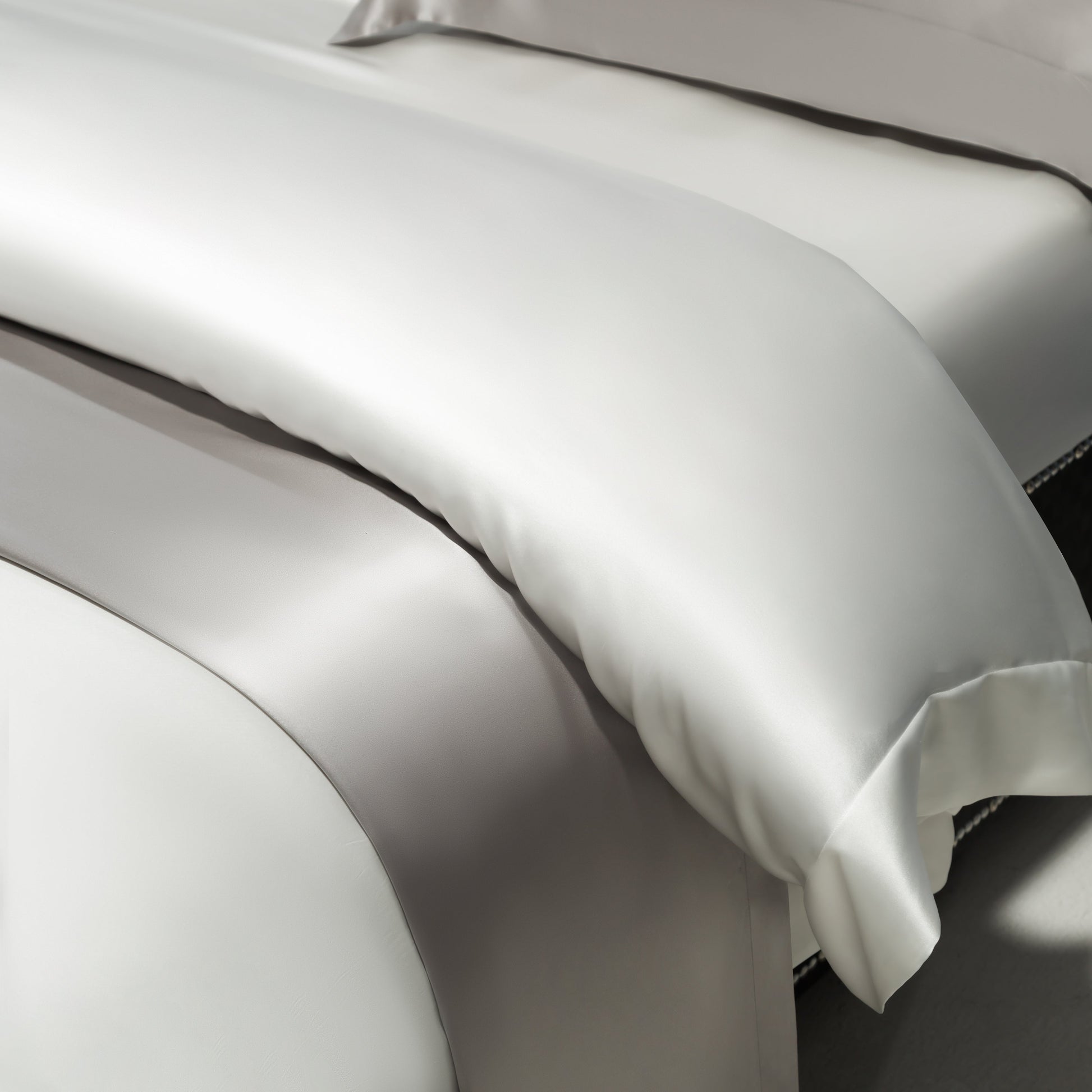 Il nostro raso di pura seta naturale 22 Momme, dalla trama satinata e luminosa, avvolge la pelle con una carezza incomparabile, fresca d’estate e avvolgente d’inverno.