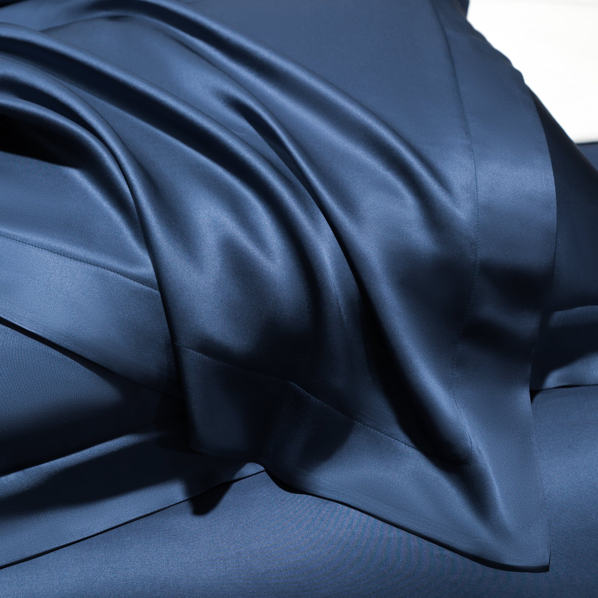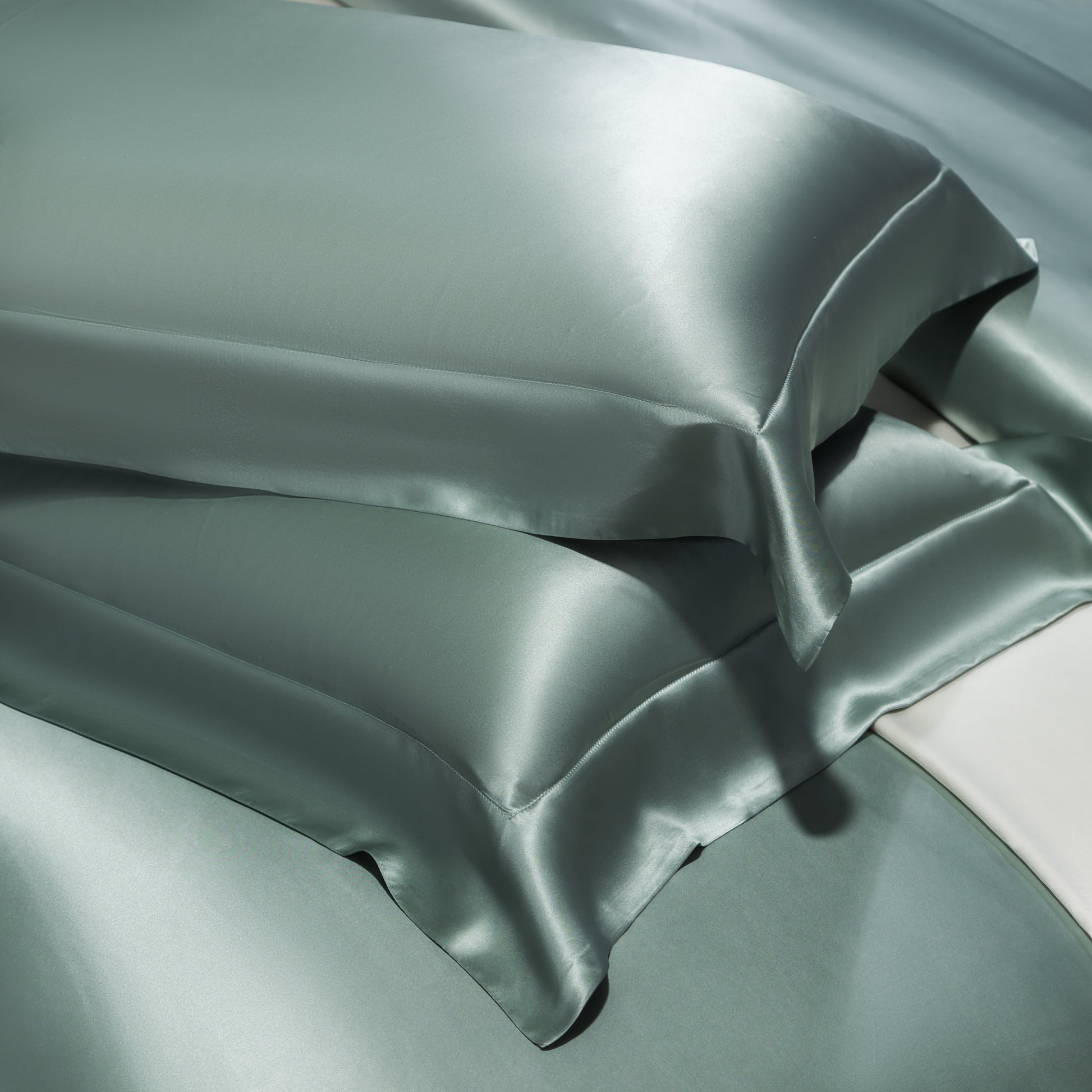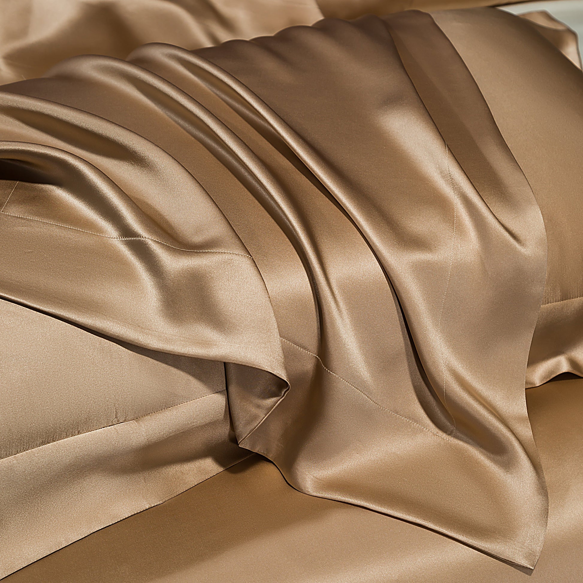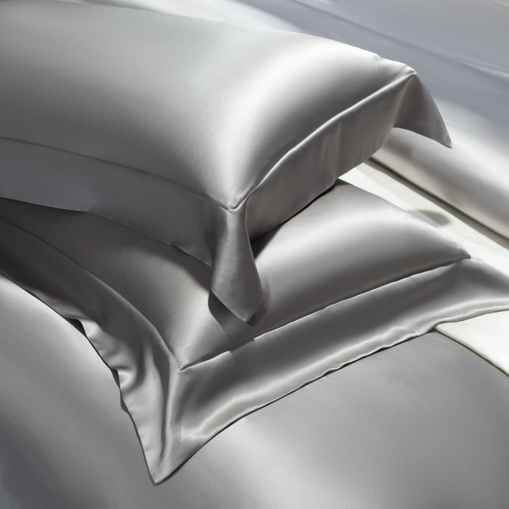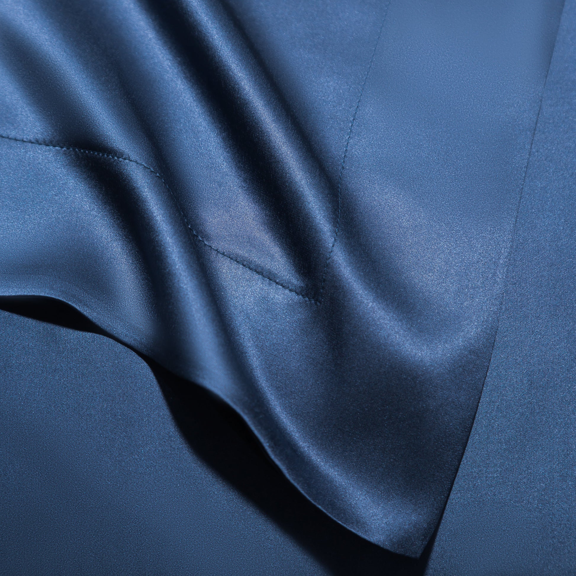 Il nostro raso di pura seta naturale 22 Momme, dalla trama satinata e luminosa, avvolge la pelle con una carezza incomparabile, fresca d’estate e avvolgente d’inverno.