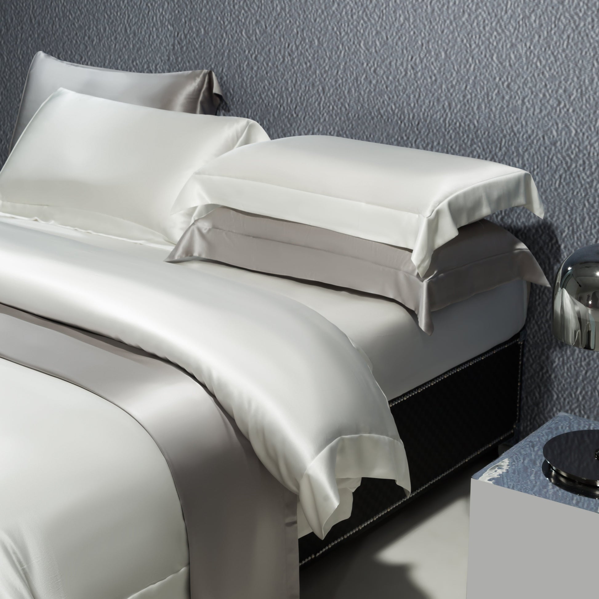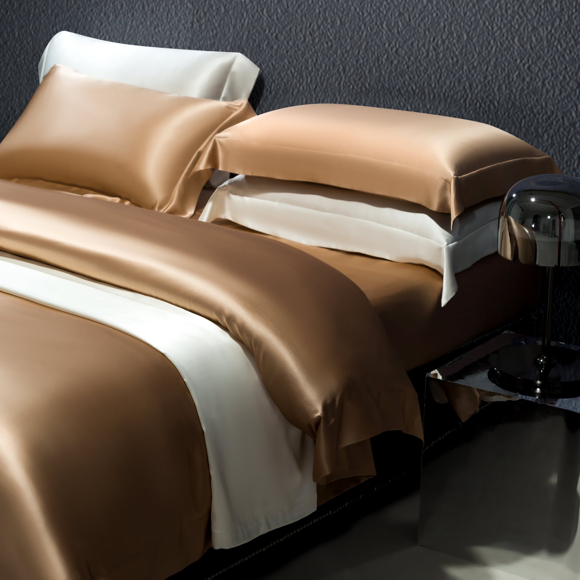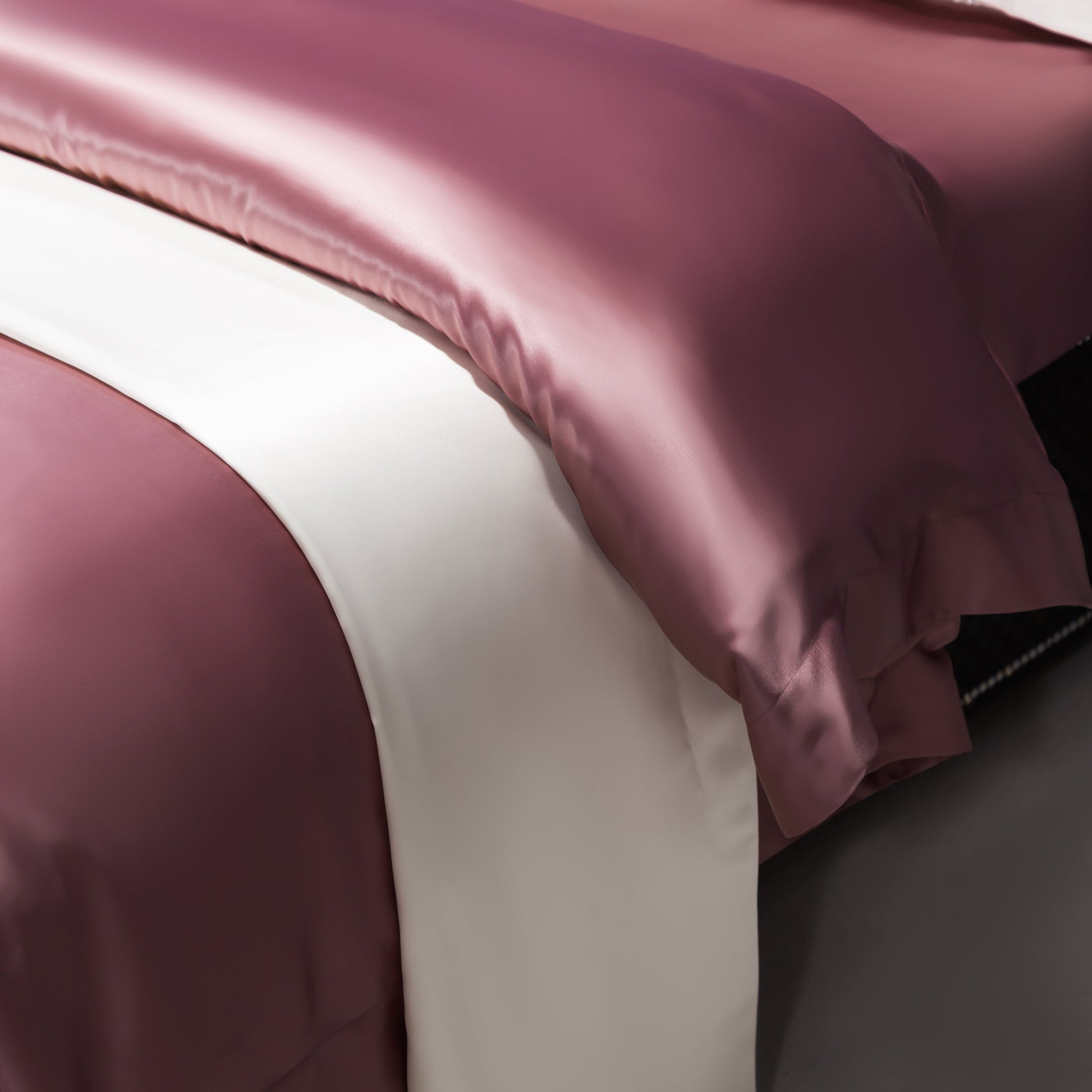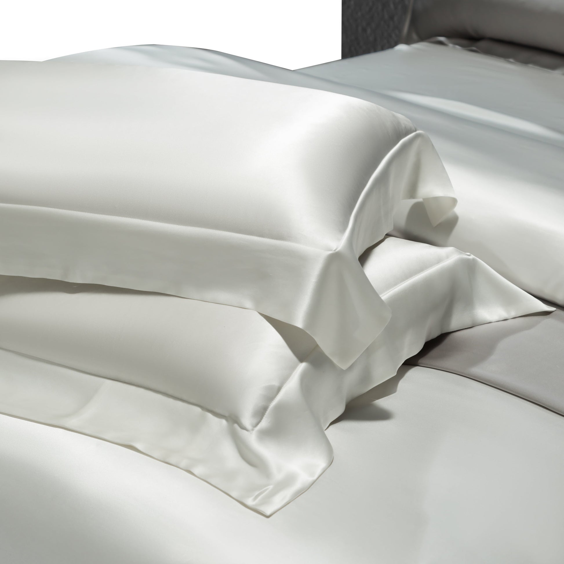 Il nostro raso di pura seta naturale 22 Momme, dalla trama satinata e luminosa, avvolge la pelle con una carezza incomparabile, fresca d’estate e avvolgente d’inverno.