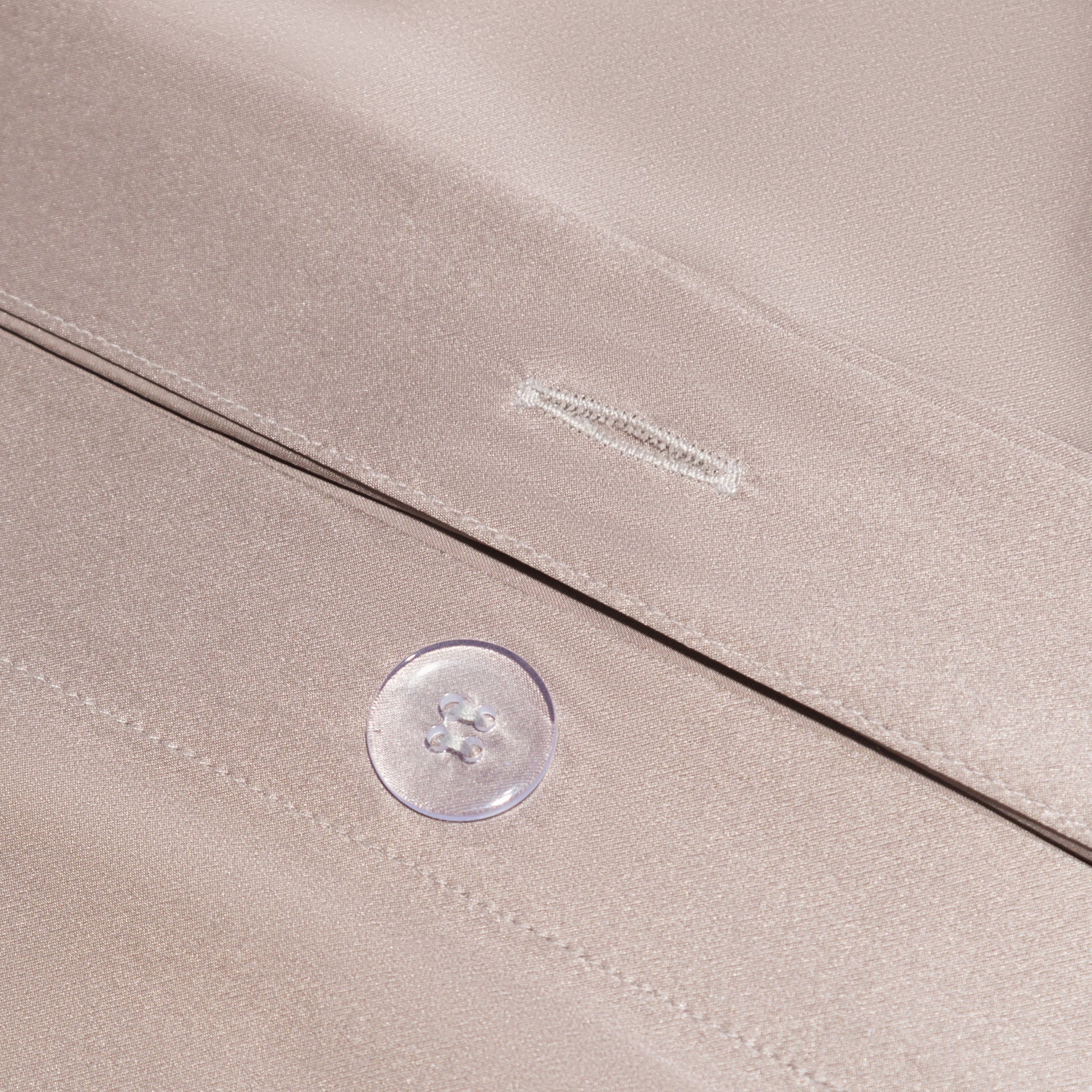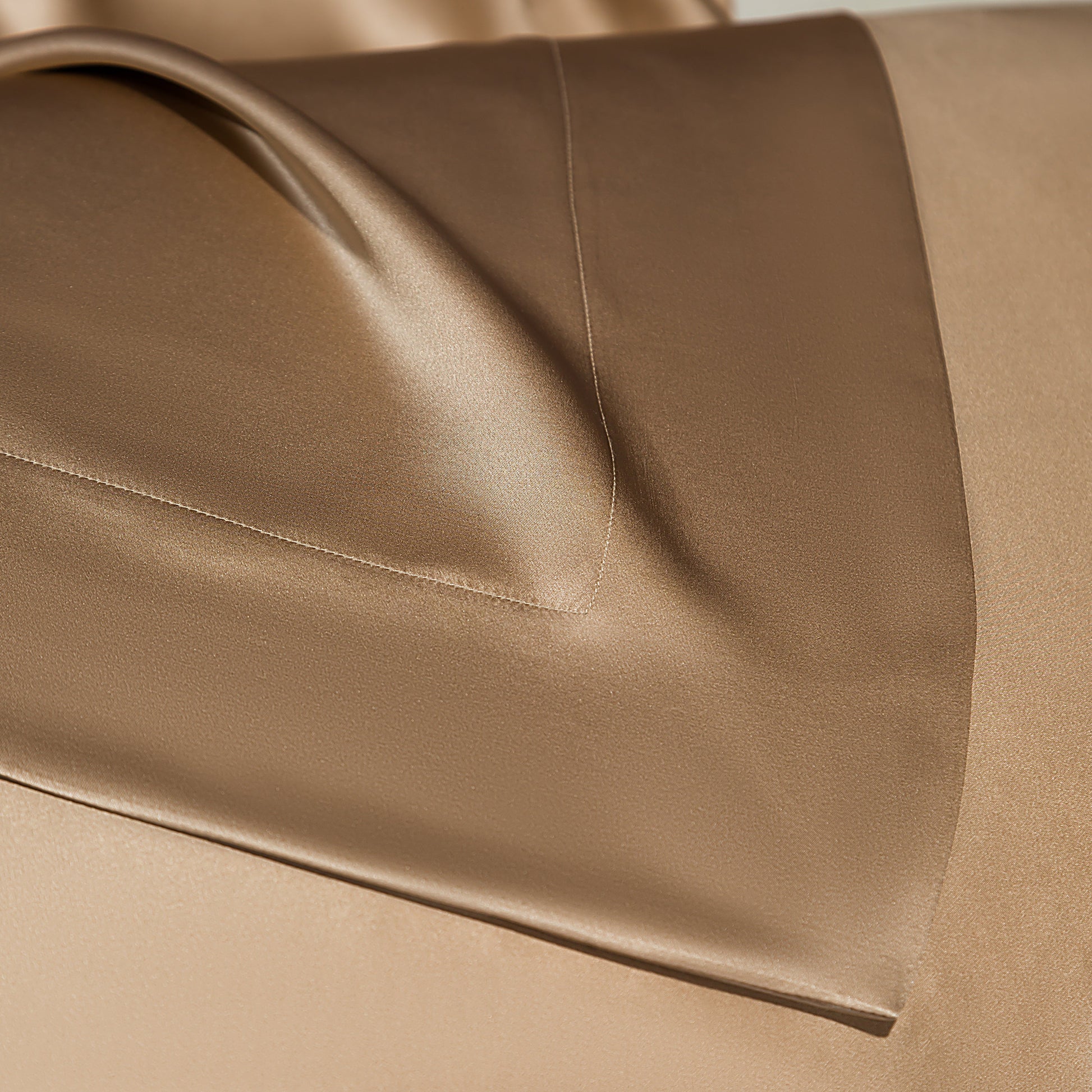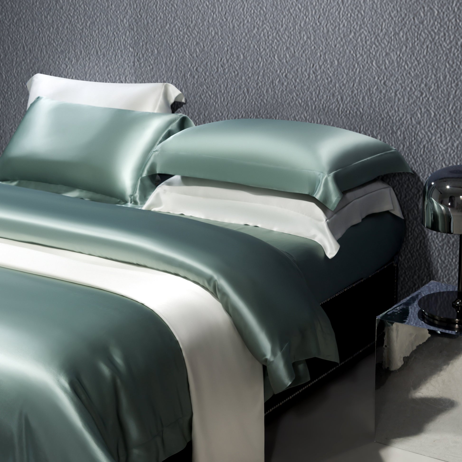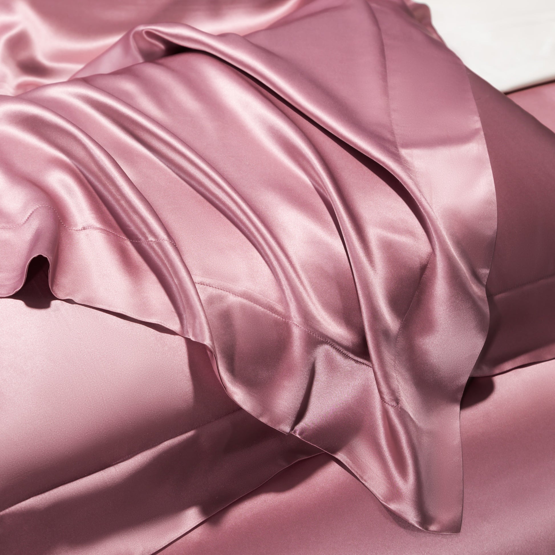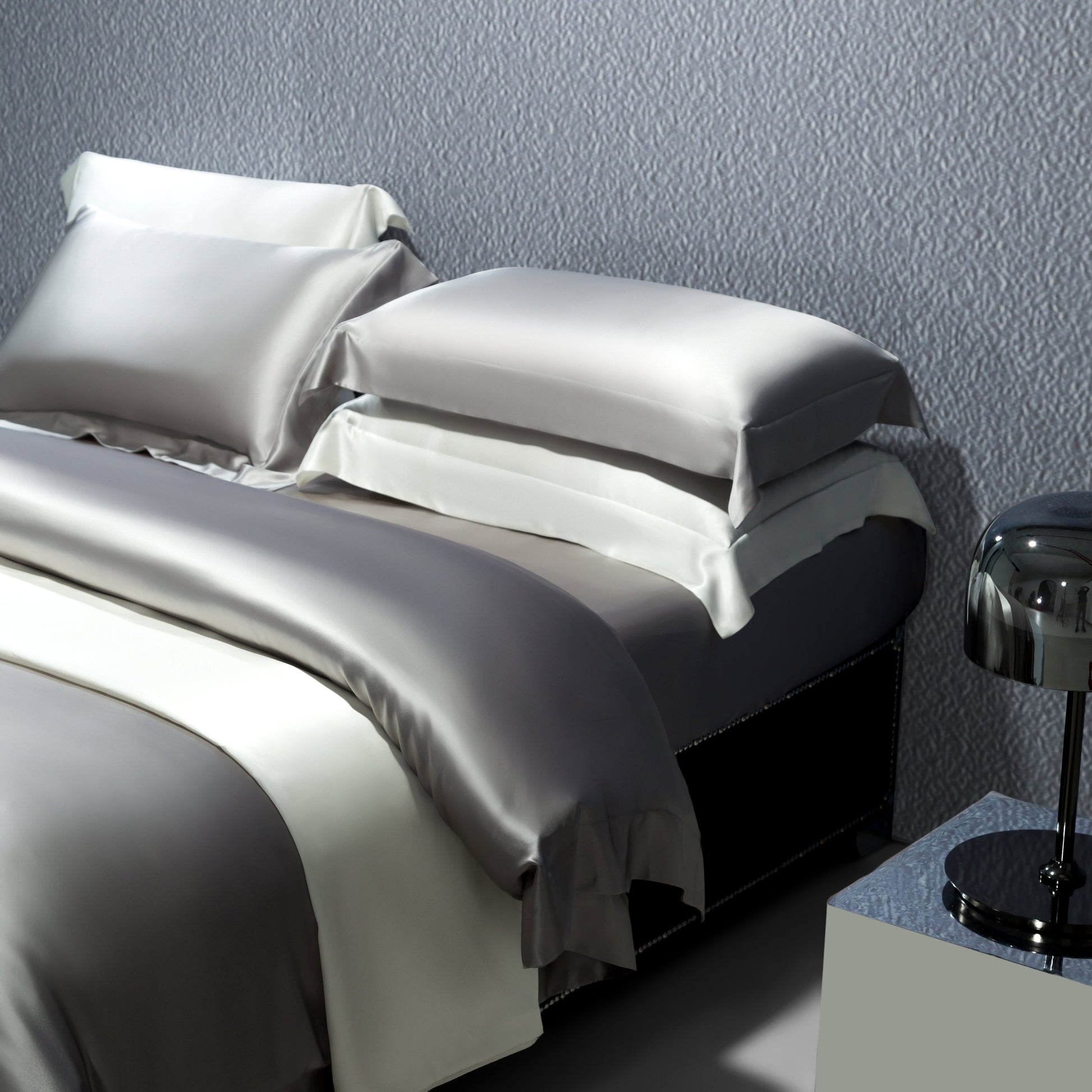 Il nostro raso di pura seta naturale 22 Momme, dalla trama satinata e luminosa, avvolge la pelle con una carezza incomparabile, fresca d’estate e avvolgente d’inverno.