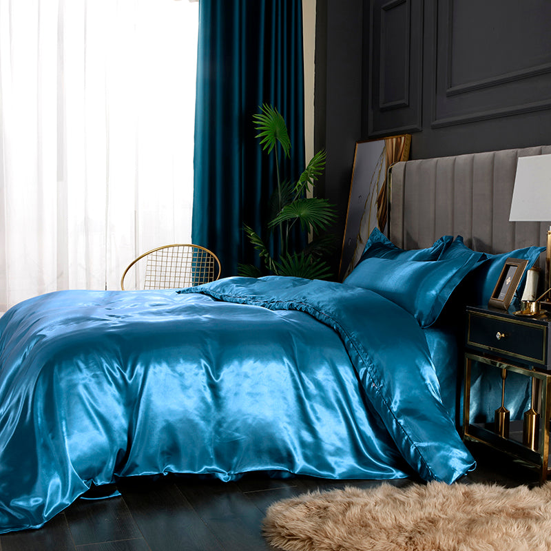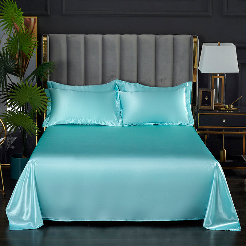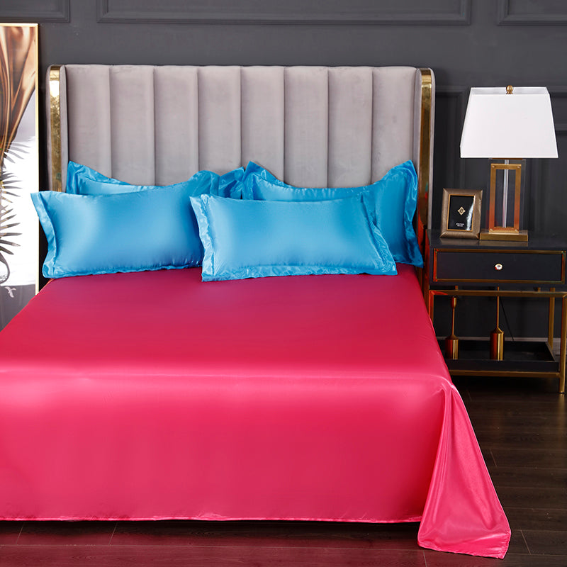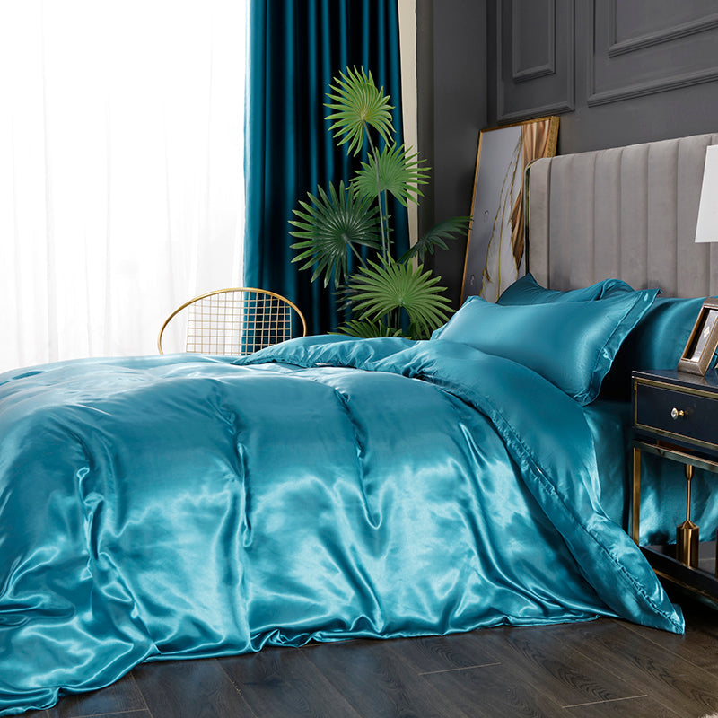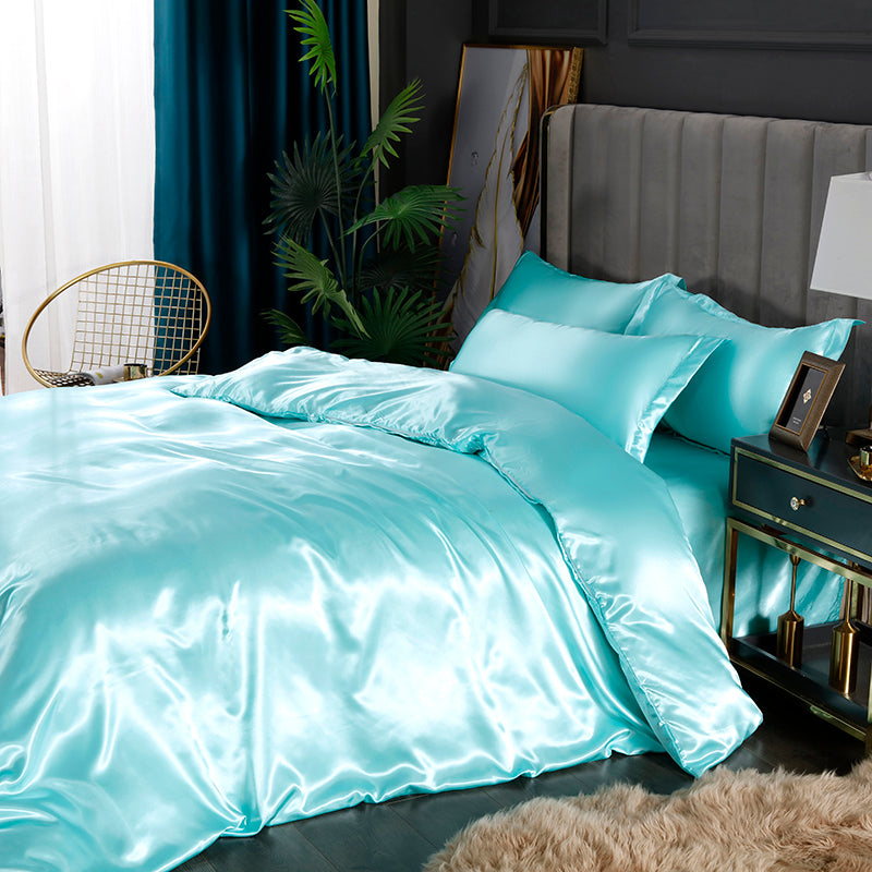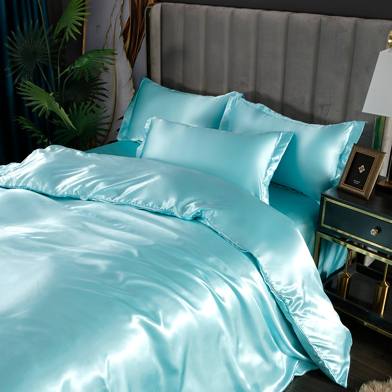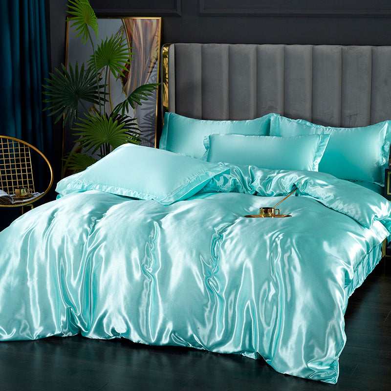 Raso satinato premium 300 TC dalla trama lussuosa e brillante che avvolge la pelle con morbidezza setosa.