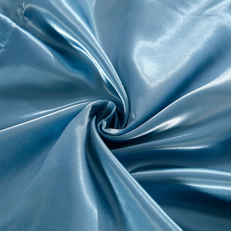 Il nostro tessuto in poliestere di alta qualità con finitura satinata offre quella caratteristica lucentezza e carezza vellutata, con un plus: resistenza superiore, zero stirature e facilità di manutenzione.