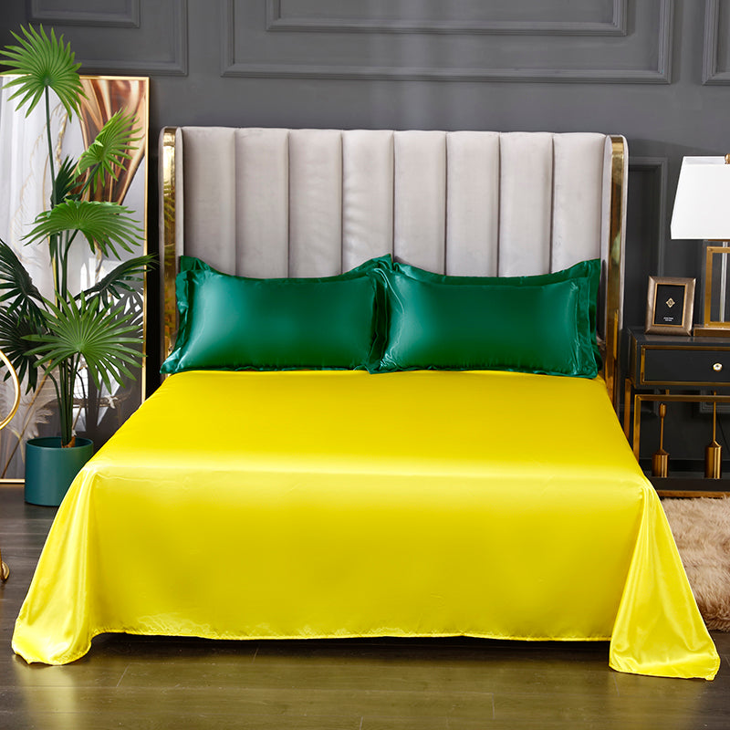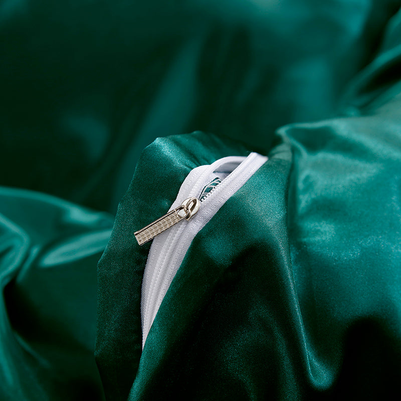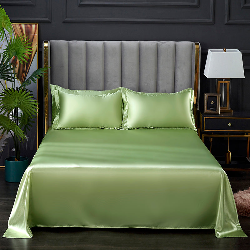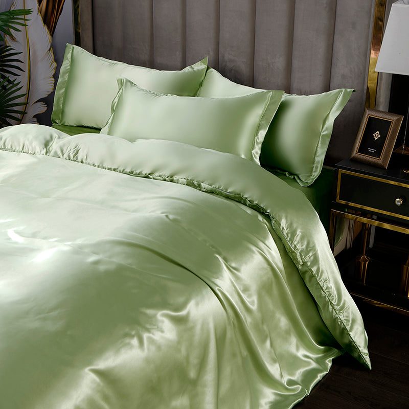 Raso satinato premium 300 TC dalla trama lussuosa e brillante che avvolge la pelle con morbidezza setosa.